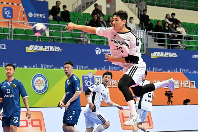 두산은 6일 오후 12시50분 강원특별자치도 삼척시 삼척시민체육관에서 열린 '신한 SOL페이 24-25 핸드볼 H리그' 남자부 5라운드 제4매치데이 경기에서 상무 피닉스를 33-21로 이겼다.