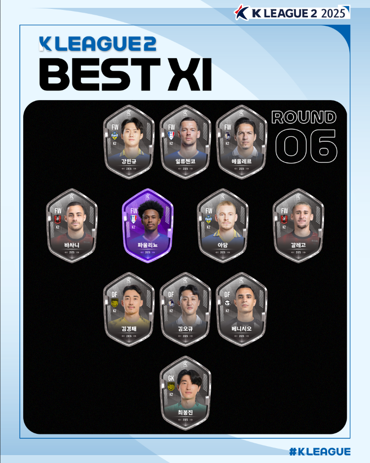 하나은행 K리그2 2025 6R MVP, 베스트 팀/매치, 베스트11