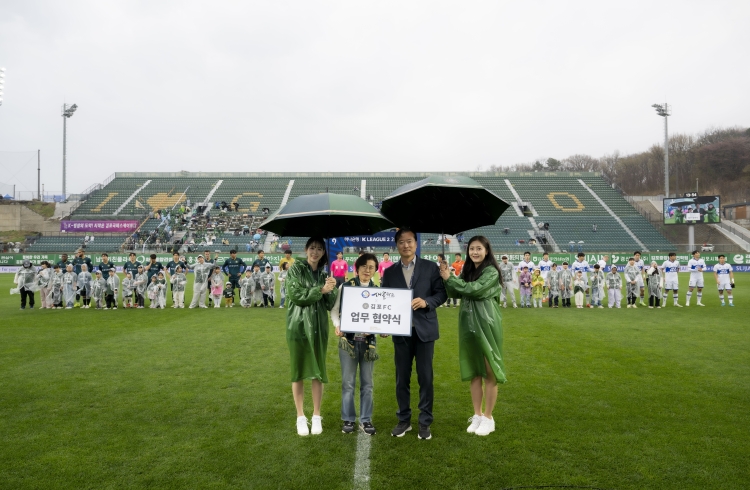 김포FC는 지난 12일 김포솔터축구장에서 열린 '하나은행 K리그2 2025' 7라운드 충남아산전 홈 경기에 앞서 새솔학교와 협약식을 체결하고 지역 상생과 스포츠 문화 체험 확대를 약속했다.