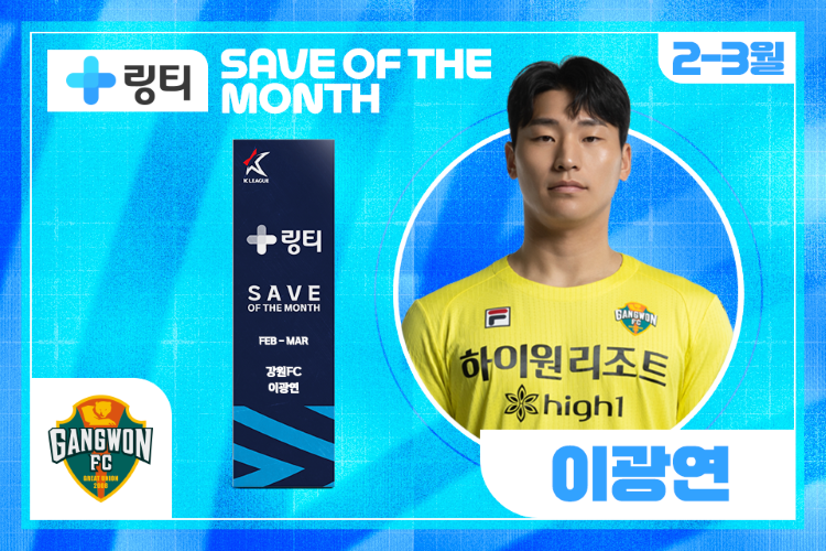 2-3월 '이달의 세이브'는 K리그1 1~6라운드 경기를 대상으로 했고, 후보는 강원 이광연과 제주 김동준이었다.