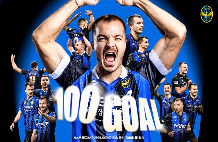 인천유나이티드 '레전드' 공격수 스테판 무고사가 구단 소속 통산 100득점이라는 금자탑을 세웠다.