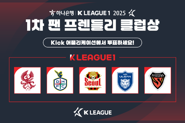 한국프로축구연맹(총재 권오갑)이 2025시즌 1차 K리그1 '팬 프렌들리 클럽상' 팬 투표를 오는 27일부터 29일까지 3일간 실시한다.
