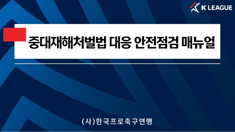 한국프로축구연맹(총재 권오갑)이 K리그 전 구단에 '중대재해처벌법 대응 안전점검 매뉴얼'을 배포했다.