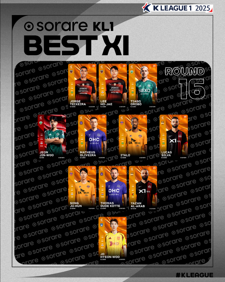 하나은행 K리그1 2025 16R MVP, 베스트 팀/매치, 베스트11