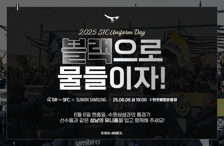 이번 홈 경기는 '유니폼 데이: 블랙으로 물들이자!'를 테마로, 성남FC 유니폼을 함께 착용하고 선수단과 한마음으로 승리를 응원하자는 취지에서 기획됐다. 실제로 이날 현장에서는 성남FC 유니폼을 착용한 팬들을 대상으로 다양한 이벤트와 프로모션이 진행될 예정이다.