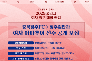 공지 충북청주FC, 올해도 청주김안과와 'K리그 퀸컵' 나선다… 여자 아마추어 선수 공개모집