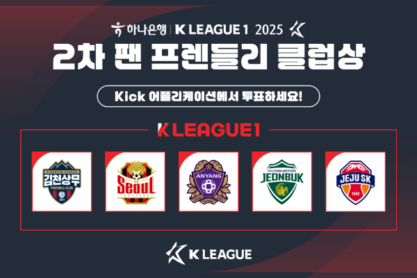 한국프로축구연맹(총재 권오갑)이 2025시즌 2차 K리그1 '팬 프렌들리 클럽상' 팬 투표를 이달 2일부터 4일까지 3일간 실시한다.