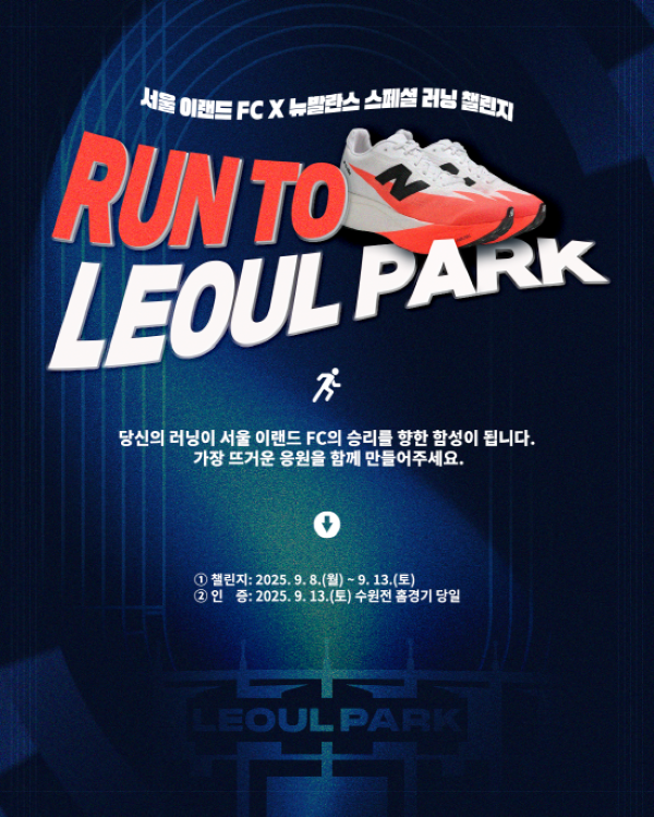 참가자는 서울 이랜드 공식 앱에서 이벤트를 신청한 후 수원전 홈 경기 당일 뉴발란스 브랜드데이 부스를 방문해 GPS 기반 러닝 앱 기록을 인증하면 된다. 인증을 완료한 선착순 300명에게는 스페셜 메달과 하프타임 러키드로 응모권이 제공된다.