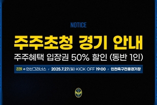 공지 인천유나이티드, 27일 안산전 시민주주 모신다… 입장권 50% 할인